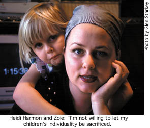 "Public schools are sacrificing individuals for the needs of the group, and I'm not willing to let my children's individuality be sacrificed," said Heidi Harmon, a liberal arts grad from Cal Poly whos unschooling her 5-year-old daughter, Zoie, and 3-year-old son, Jack.