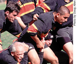 Paul Cappellano, a 34-year-old teacher at Atascadero High School and president of the SLO Rugby Club, is fortunate to have limited his injuries to a few cracked ribs. Cuts, bumps, and bruises give him a sense of serenity and strength. After rugby, he says, the rest of lifes aggravations seem a little easier to handle.