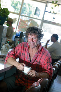 ROAD WEARY Fresh from a road trip to L.A., Cayucos author Dell Franklin stops for a cup of coffee at one of SLO County's few remaining down-home treasures-Louisa's Place in San Luis Obispo.