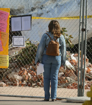 hundreds of people visit daily the scene of major destruction from quake.