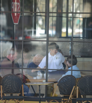 A bustling crowd indicates business as usual at the French Bakery