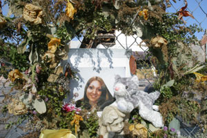 A memorial wreath remains at the downtown site for Jennifer Myrick,