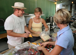 Glen Starkey works under the direction of caterer Bonnie Bardin